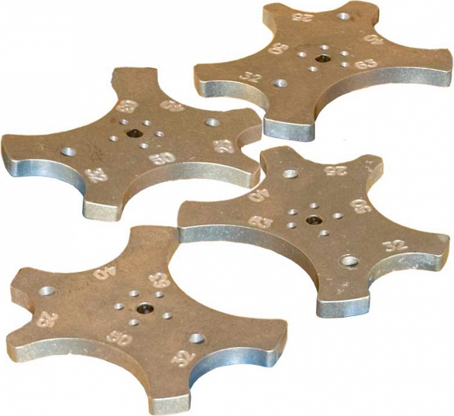 - Диаметр зажимаемой трубы определяется положением 4-х зажимов, каждый из которых поворачивается вокруг оси и фиксируется в одном из 5-ти положений